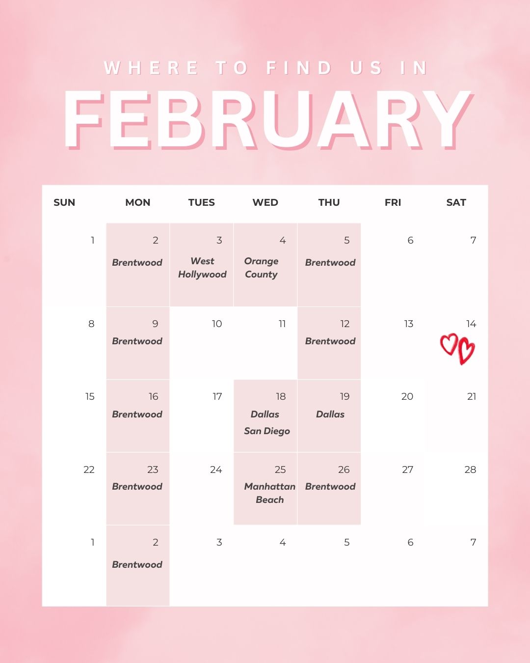We also pop up in New York, Dallas, and San Francisco EVERY OTHER month.